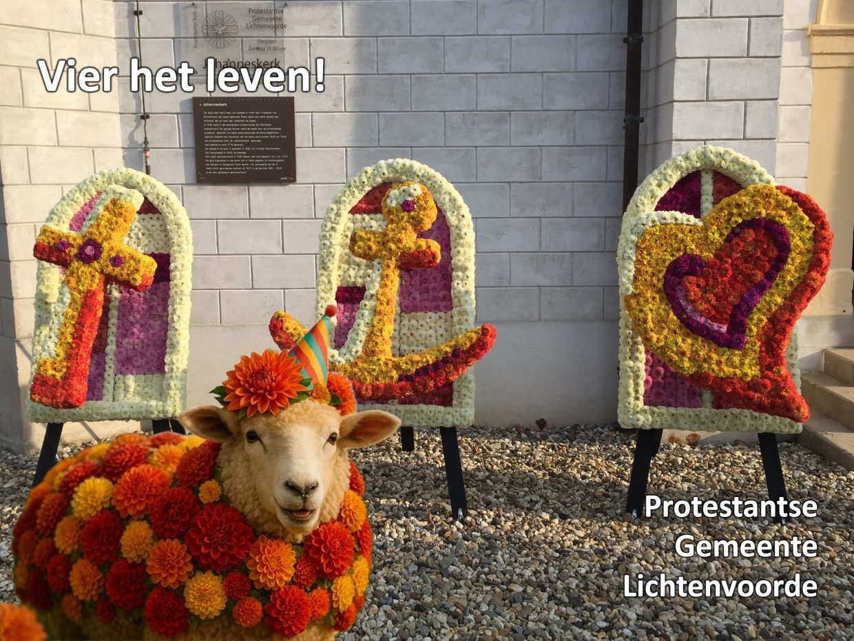 Wat was het weer genieten van het prachtige bloemencorso! Maar wist je dat we er in de Johanneskerk ook ieder jaar aandacht aan schenken? In een verhaal uit de Bijbel ging het dit jaar over blijdschap over het terugvinden van iets dat verloren is, of dat nu een verdwaald schaap is of een muntje. Het corso (en Lichtenvoordse kermis): het is een moment waarop heel wat “verloren” schaapjes de weg weer terugvinden naar de oude kudde, om samen feest te vieren. Daarbij zullen vast de nodige muntjes verloren zijn. Als Johanneskerk doen we er op onze wijze aan mee. Ook in de kerk is het soms een vrolijk weerzien van oude bekenden én we hebben zelfs onze eigen ‘festivalmuntjes’ (voor maar € 1,25)!